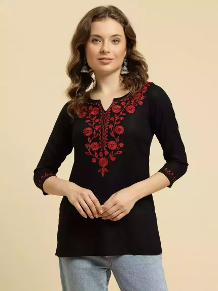 Look ethereal in this Aari work Kurti, freshly crafted in the lightness and comfy feel of cotton.