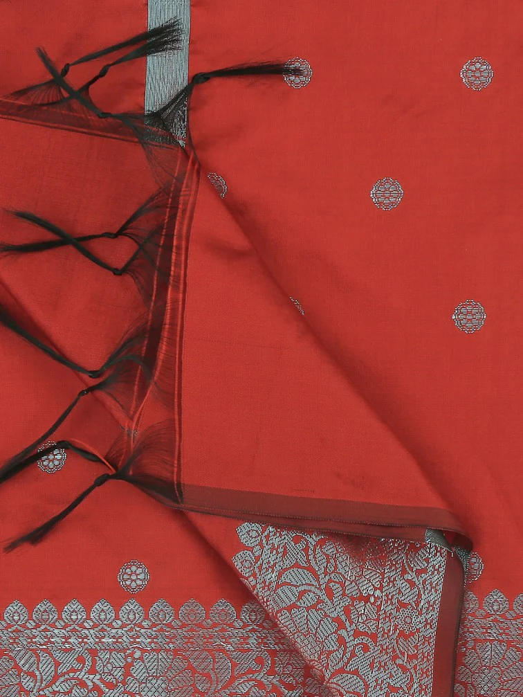 - This Fine Banarasi dupatta is adorned with beautiful woven motifs along with rich silver zari border.