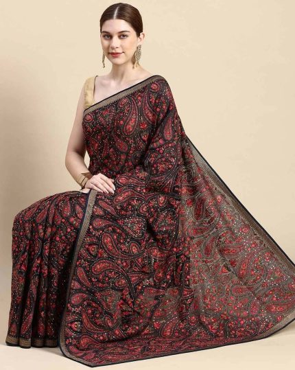 Floral Embroidered Sequins Stone Embossed Saree Festive Wear