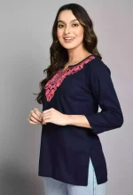 Blue Kashmiri Embroidered Short Kurti