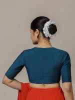 Home Blouse Half-Sleeve Blouse Damini x Rozaana | Crystal Teal Elbow Sleeves FlexiFit Saree Blouse with Plunging Neckline