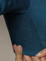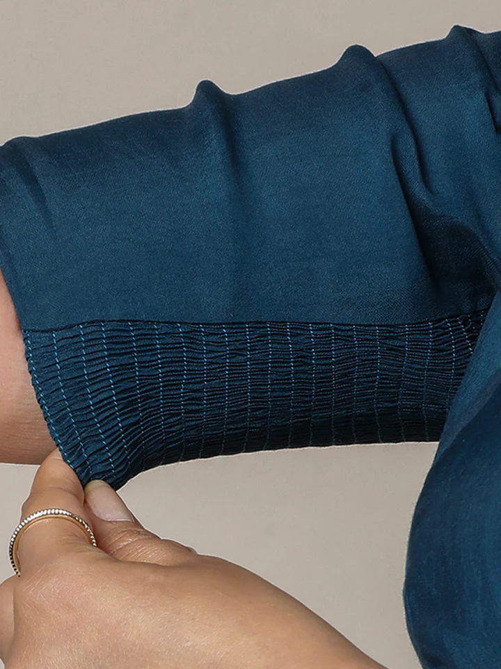 Damini x Rozaana | Crystal Teal Elbow Sleeves FlexiFit Saree Blouse with Plunging Neckline