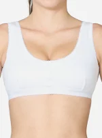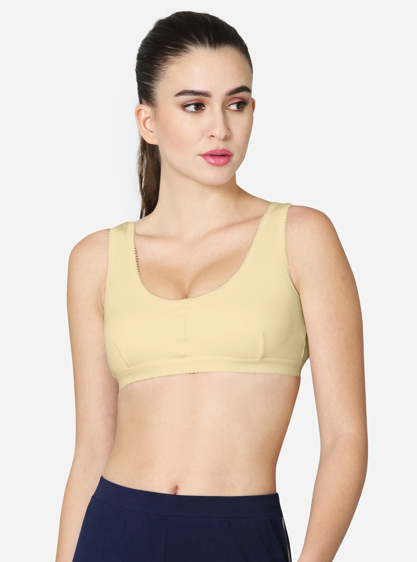 Made of 100% superior, soft combed cotton, providing excellent comfort. The double-layered, darted front panel provides maximum support. Seamed, non-padded with high coverage on the centre front. Soft, smooth, wide camisole-style strap.p No hooks or eyes attached for easy slip-on. Available in white skin & black colors