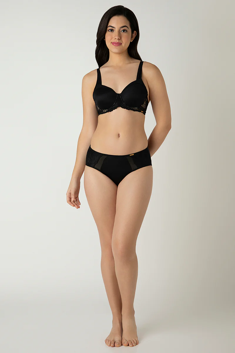 Folded mesh detail at the neckline to give a subtle coverage & support, together with a chic look