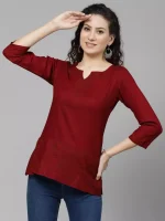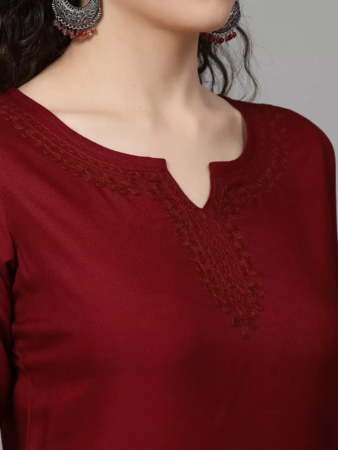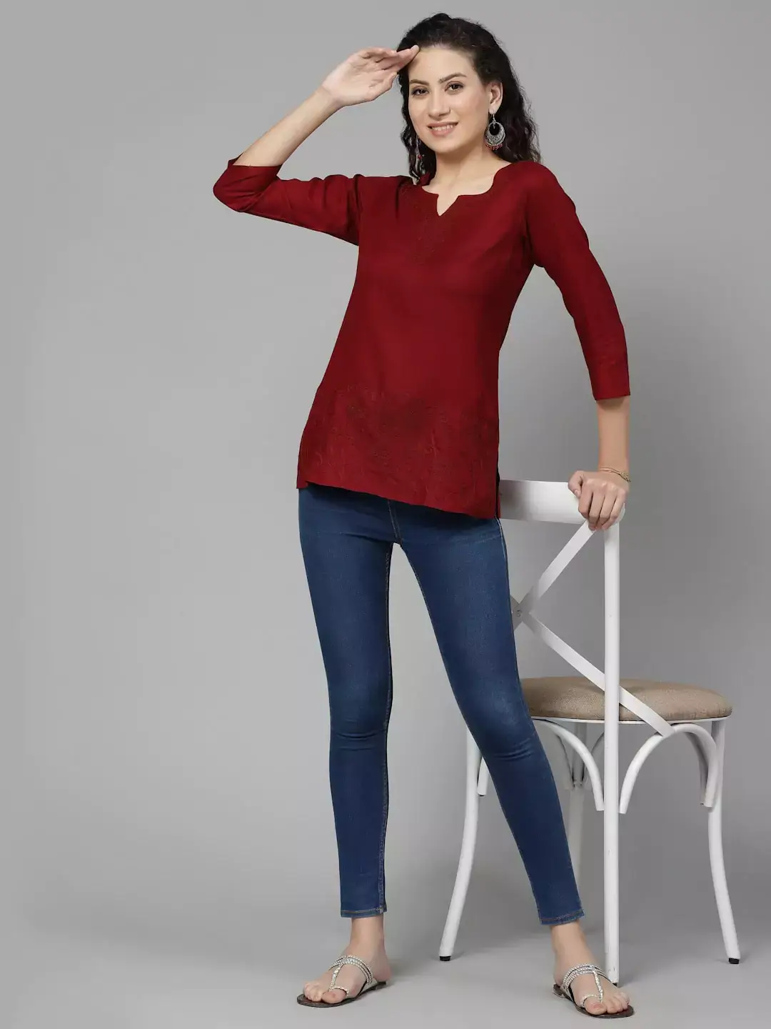 Home Kurtis Short Kurtis Hiba Maroon Self Embroidered Short Kurti