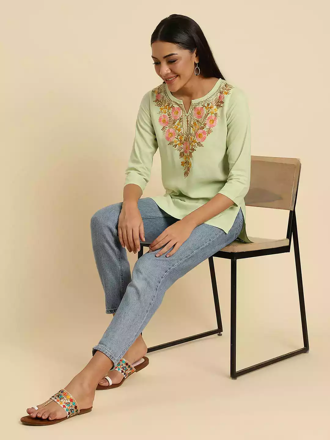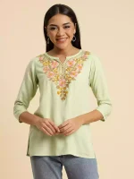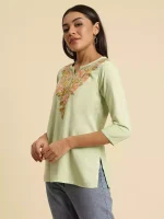 Home Kurtis Short Kurtis Israa Pista Green Short Kurti