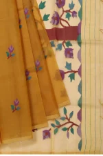 Mustard Kanchipuram Tissue Silk Saree with Large Gold Zari Border