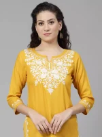 Mustard Yellow Chikankari Short Kurti