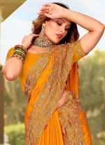 The Mustard Satin Blend Embroidered Saree is a masterpiece of elegance and artistry meticulously crafted for women who appreciate the finer things in life. This saree is a stunning representation of traditional Indian craftsmanship combined with contemporary fashion sensibilities. The saree is made from a luxurious blend of satin fabric renowned for its smooth texture and subtle sheen. The rich mustard hue adds a touch of warmth and sophistication making it a perfect choice for special occasions and festive celebrations. The fabric drapes beautifully enhancing the wearers silhouette and creating a graceful flowing effect. One of the standout features of this saree is its exquisite embroidery work. Intricate floral and paisley motifs are delicately embroidered throughout the length of the saree adding a touch of timeless charm and opulence. The embroidery is done using highquality threads and intricate techniques showcasing the skill and craftsmanship of the artisans who created this masterpiece. The border of the saree is adorned with intricate lacework or zari detailing adding a touch of glamour and completing the overall look. The pallu or loose end of the saree is also elegantly embroidered creating a visually stunning effect when draped over the shoulder. In summary the Mustard Satin Blend Embroidered Saree is a symbol of grace elegance and sophistication. Its luxurious fabric intricate embroidery and timeless design make it a coveted choice for women who want to make a lasting impression at any event. Wearing this saree is not just about dressing up its about embracing a rich cultural heritage and expressing a unique sense of style and confidence.