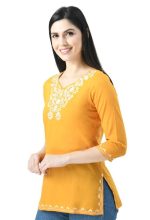 Home Kurtis Short Kurtis Mustard Yellow Resham Work Short Kurti