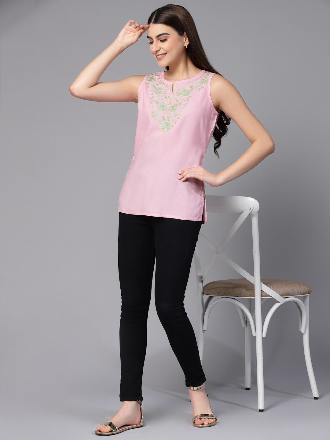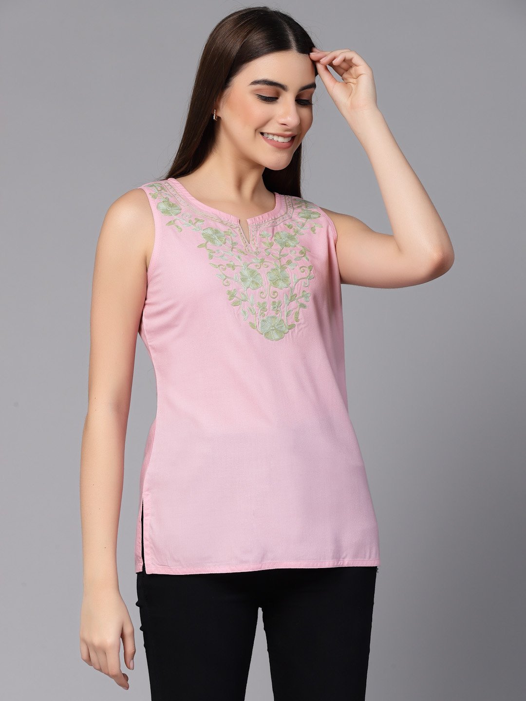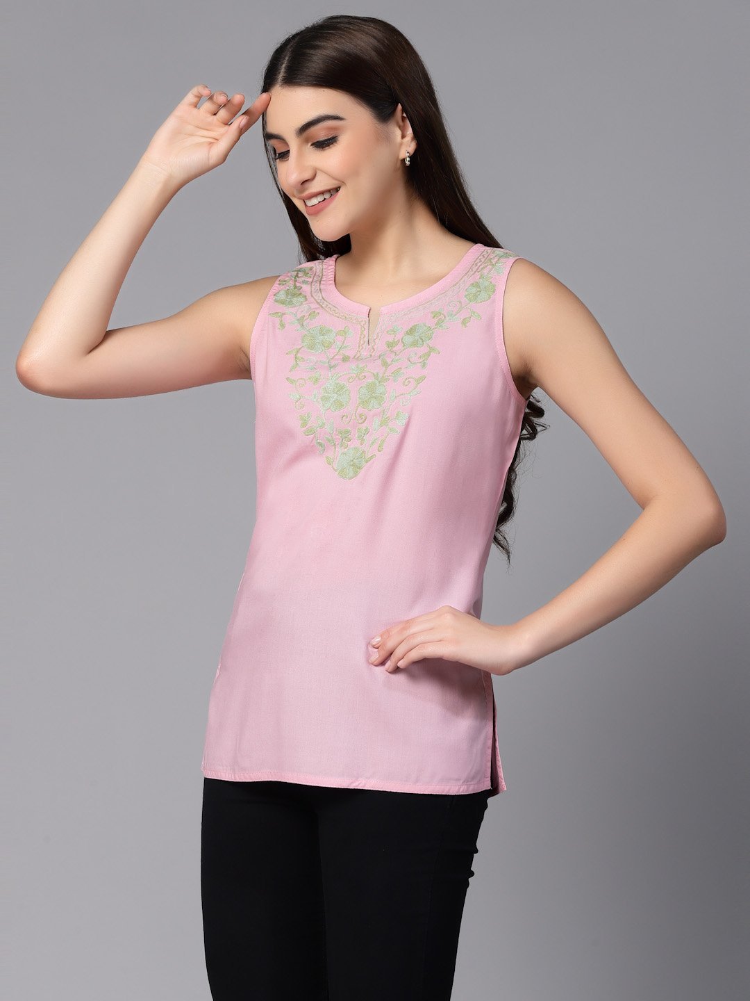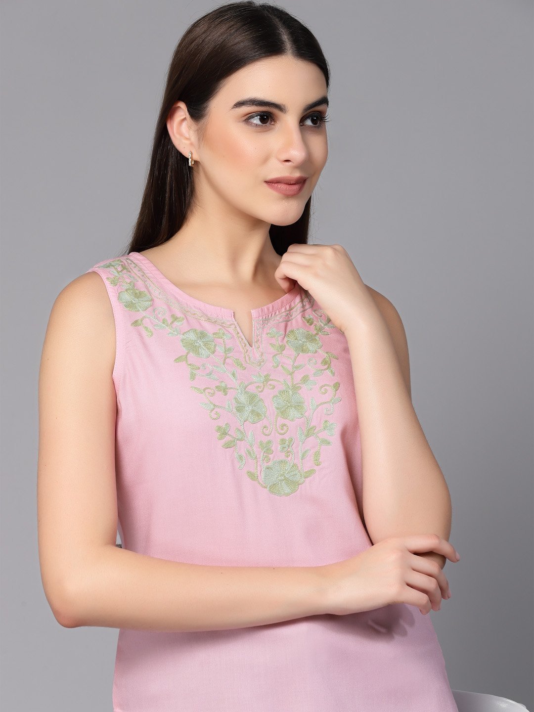 Home Kurtis Short Kurtis Nadia Kashmiri Light Pink Sleeveless Kurti