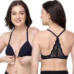 Home Bra Padded Bra Navy Blue Non-Wired Lightly Padded Medium Coverage Women’s Front-Open Bra