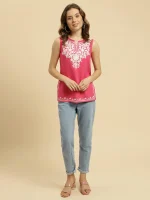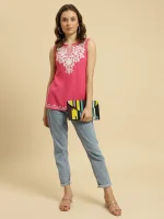 Pink Sleeveless Short Kurti