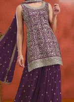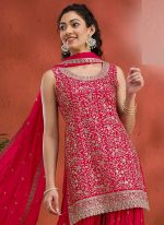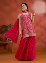 Red Georgette Embroidered Sequin Palazzo Set Festive Wear