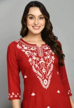 Home Kurtis Long Kurtis Red Kashmiri Embroidered Kurti
