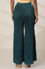 Teal Solid Flared Woven Sharara With Pleats