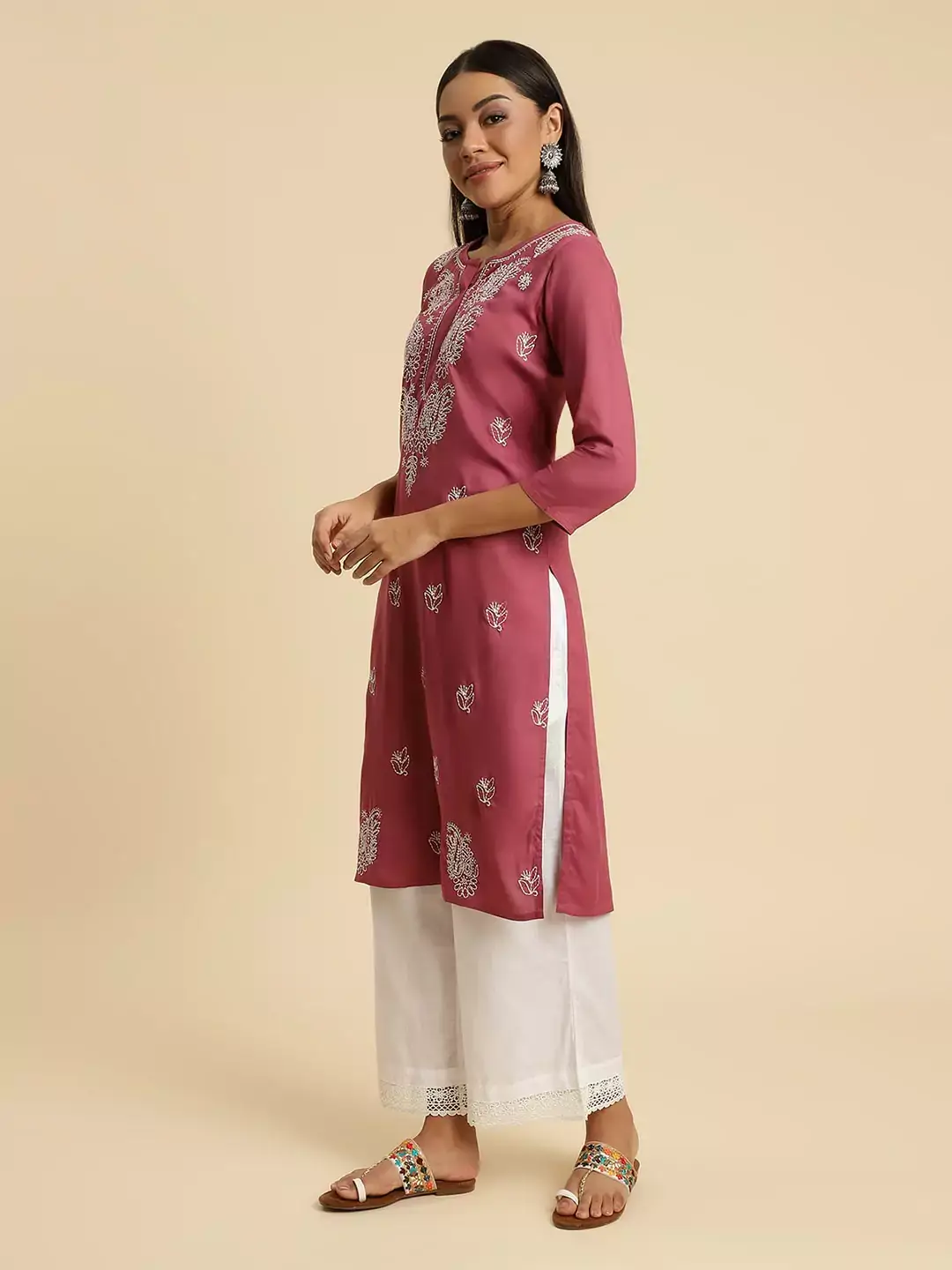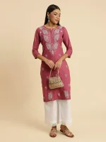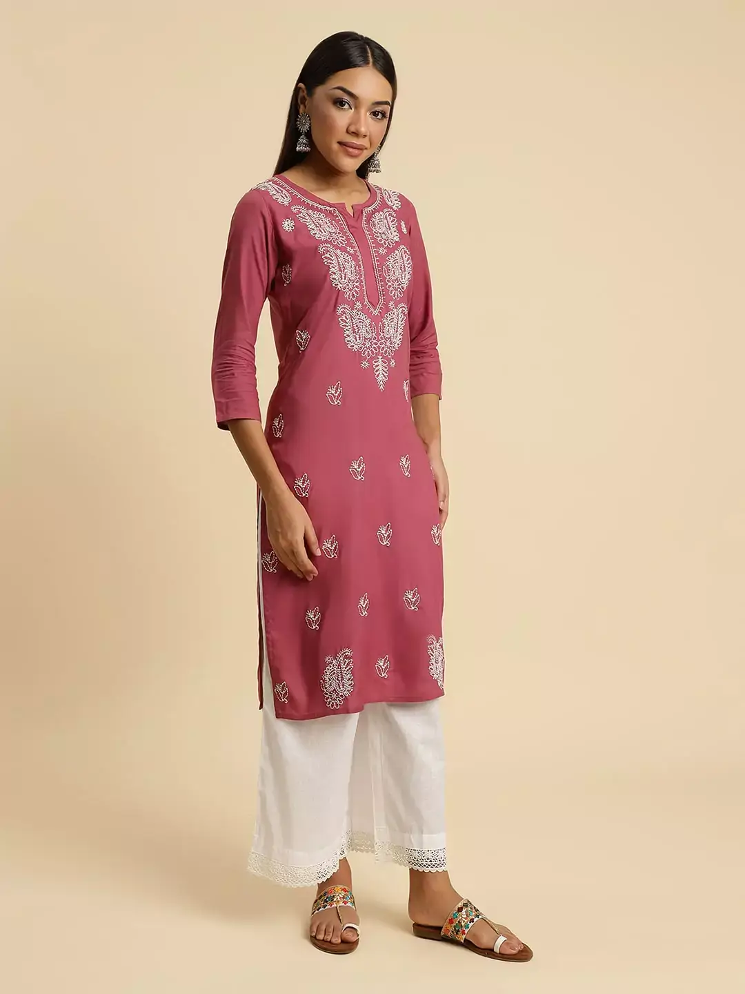 Home Kurtis Long Kurtis Wild Orchid Pink Chikankari Kurti