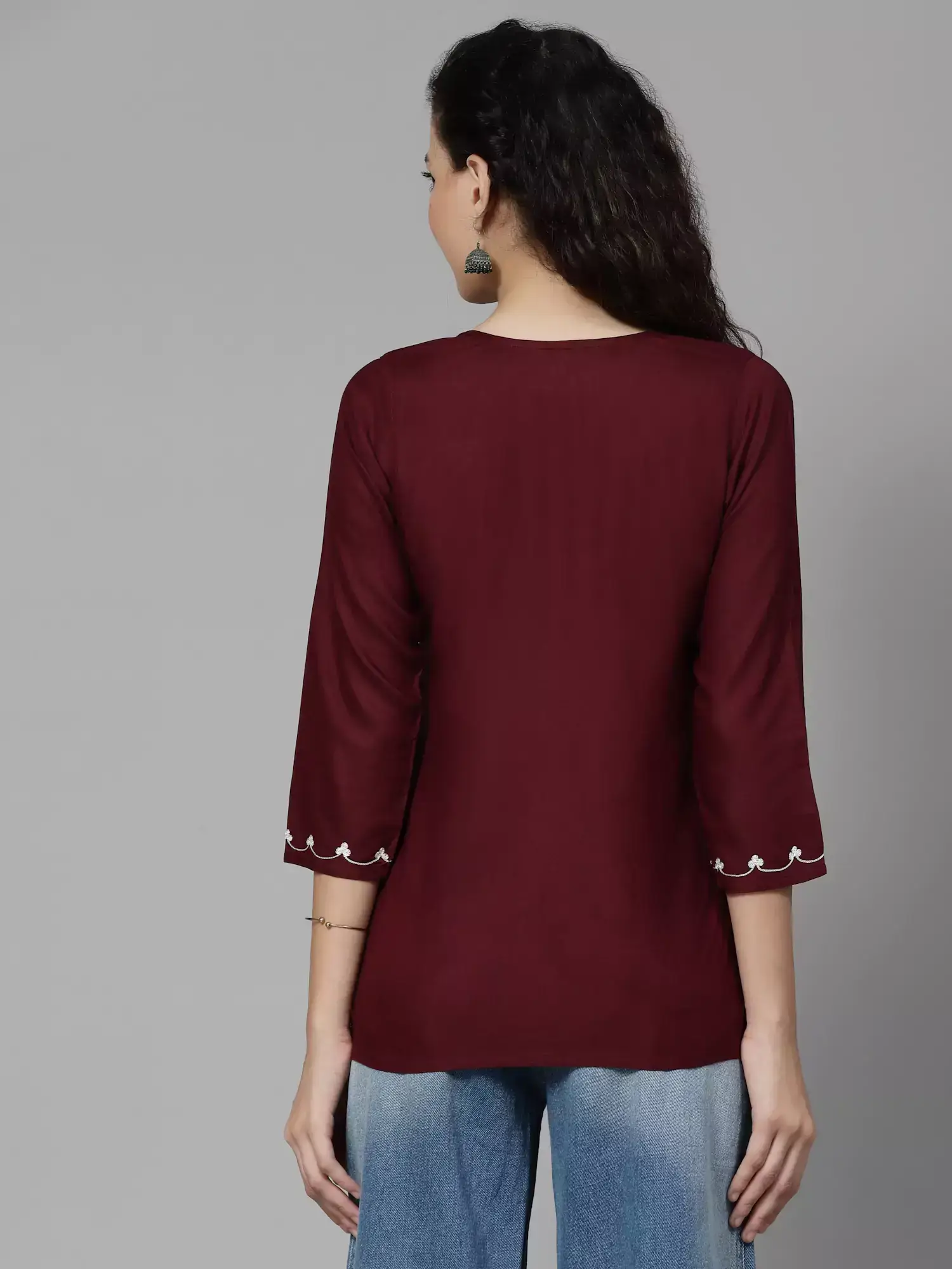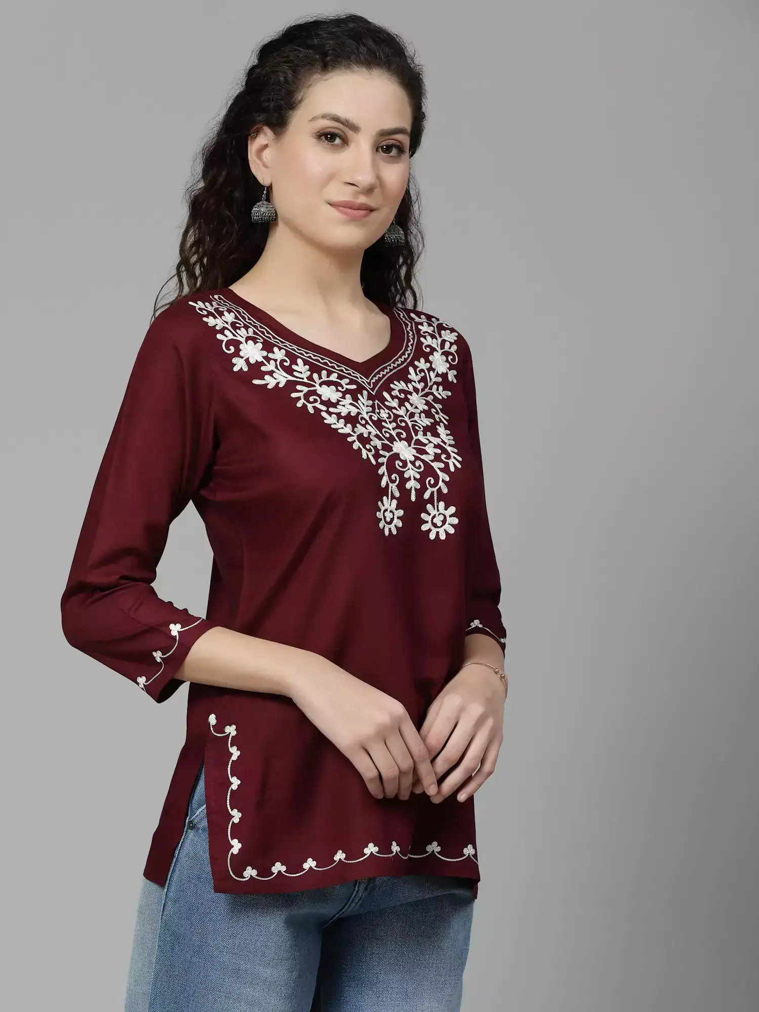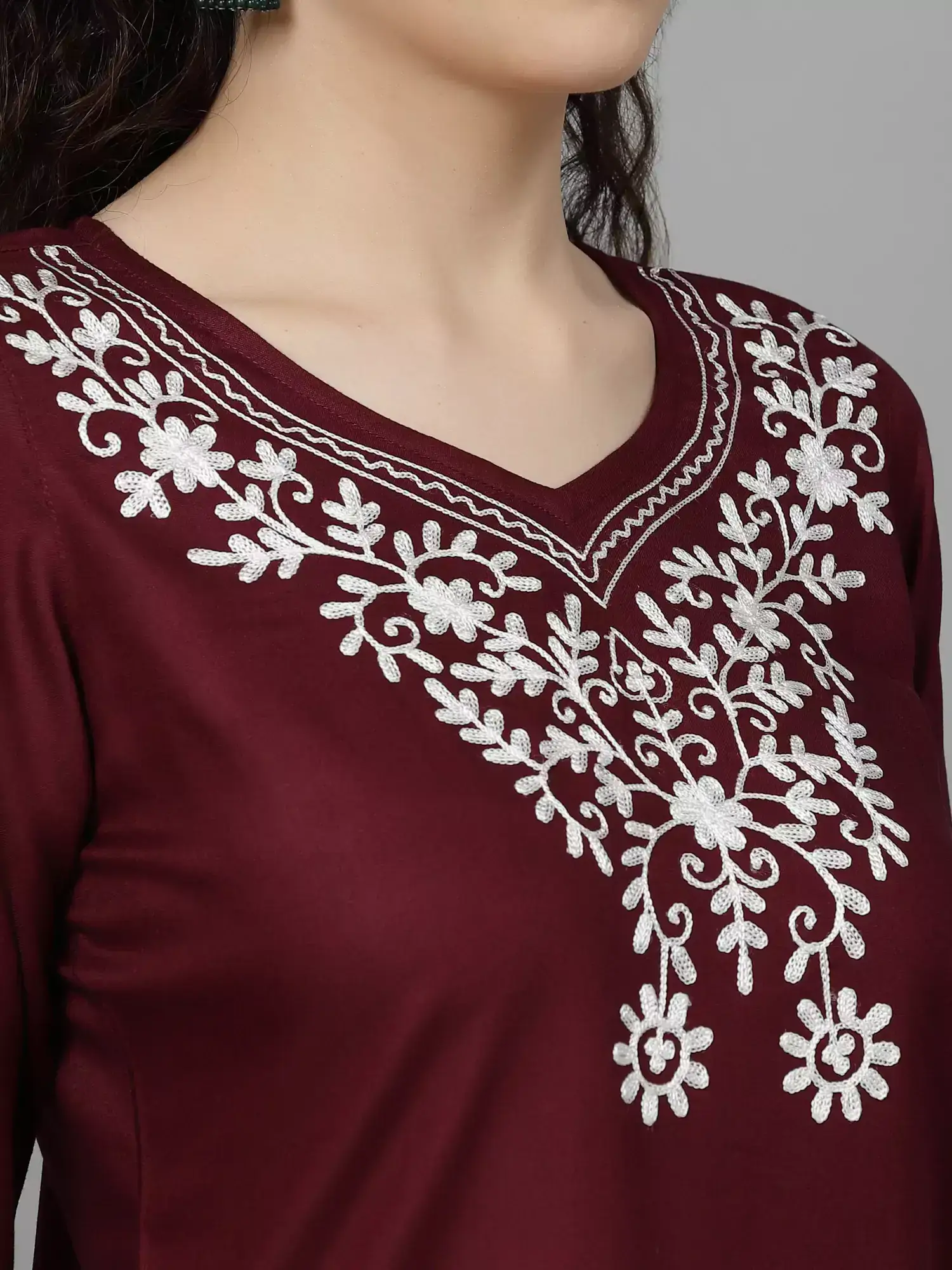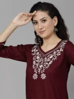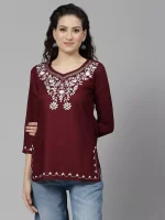 Look ethereal in this Aari work Kurti, freshly crafted in the lightness and comfy feel of cotton.