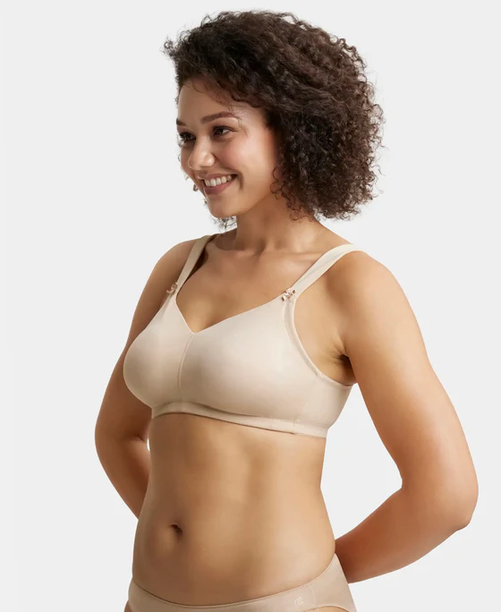 Home Bra Non Padded Bra Wire free Non Padded Soft Touch Microfiber Elastane Stretch Full Coverage Minimizer Bra with Broad Cushioned Fabric Strap